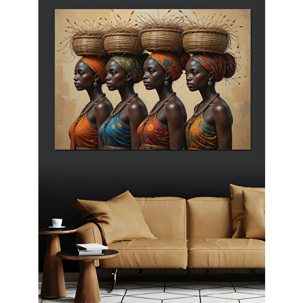 Kafasında Testi Taşıyan Kadınlar Dekoratif Kanvas - Mdf Ahşap Tablo