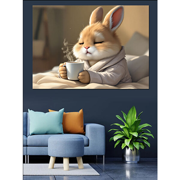 Kahve İçen Tavşan Dekoratif Kanvas - Mdf Ahşap Tablo