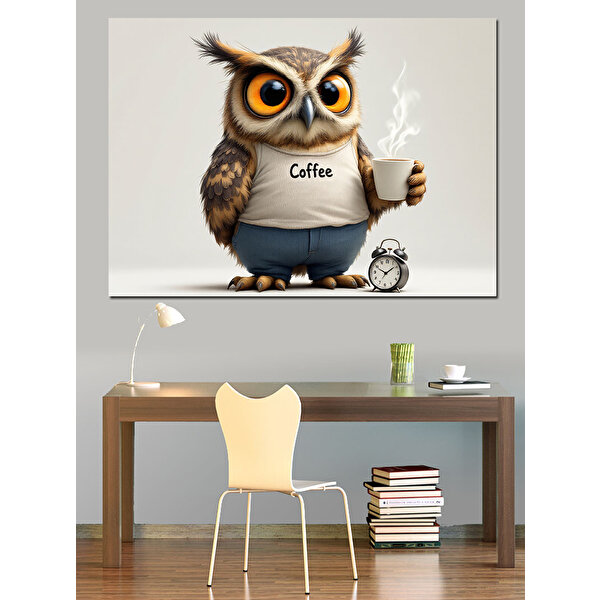 Kahve Tutan Baykuş Dekoratif Kanvas - Mdf Ahşap Tablo