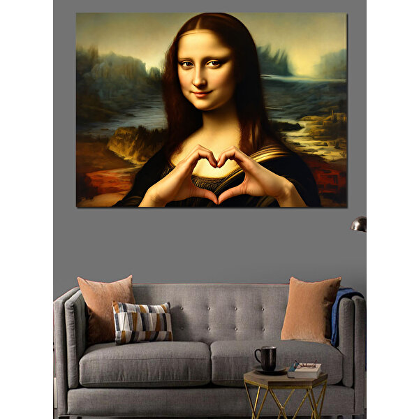 Tablomega Kalp İşareti Yapan Mona Lisa Dekoratif Kanvas - Mdf Ahşap Tablo 50x70 cm