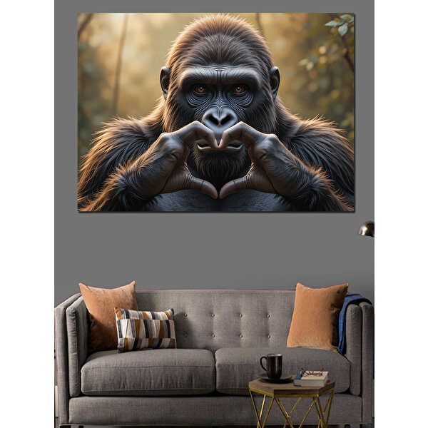 Tablomega Kalp Yapan Goril Dekoratif Kanvas - Mdf Ahşap Tablo 50x70 cm