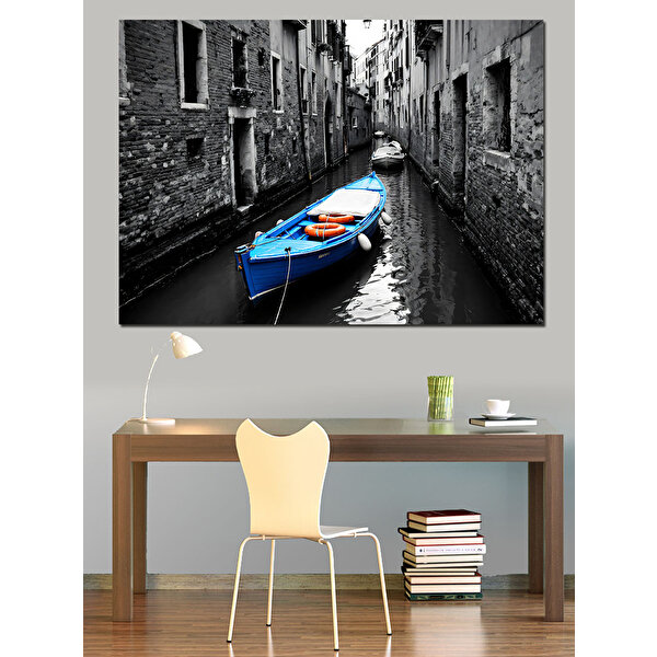 Tablomega Kanallı Sokakta Mavi Sandal Dekoratif Kanvas - Mdf Ahşap Tablo 70x100 cm