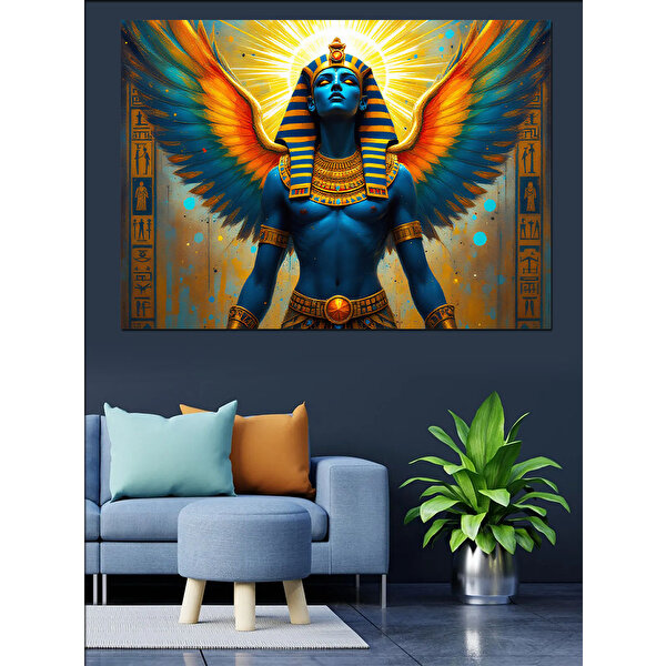 Tablomega Kanatlı Firavun Heykeli Dekoratif Kanvas - Mdf Ahşap Tablo 70x100 cm