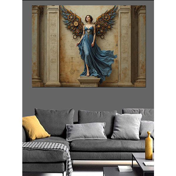 Tablomega Kanatlı Heykel Kadın Dekoratif Kanvas - Mdf Ahşap Tablo 50x70 cm