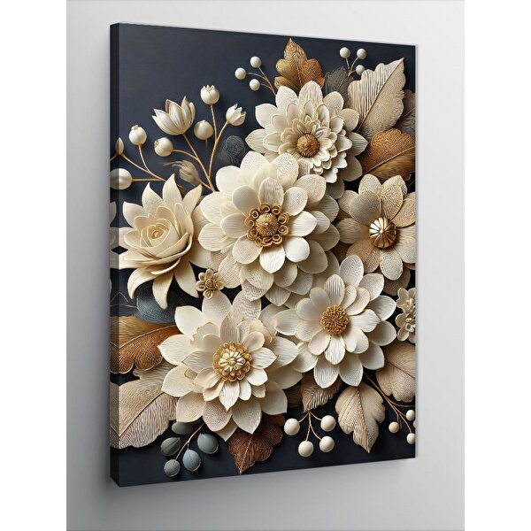 Tablomega Kanvas Tablo Altın Ve Beyaz Çiçek Tasarımı 50x70 cm