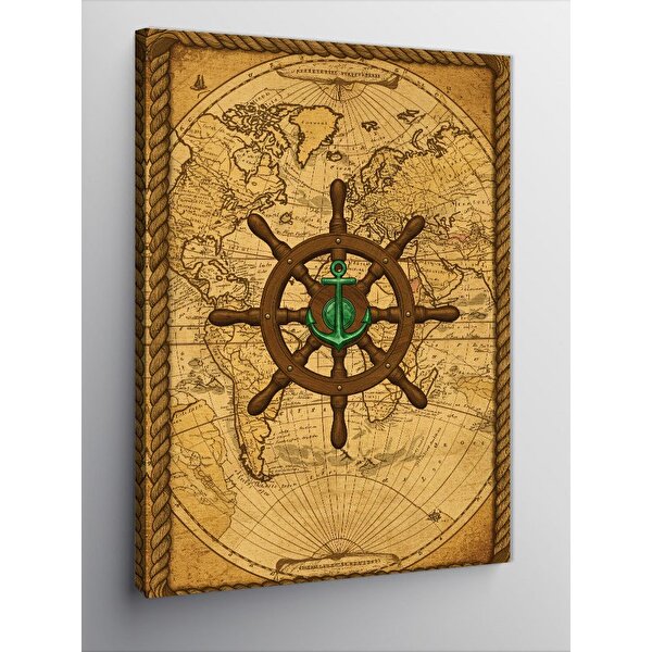 Tablomega Kanvas Tablo Antik Deniz Haritası Ve Dümen 100x140 cm
