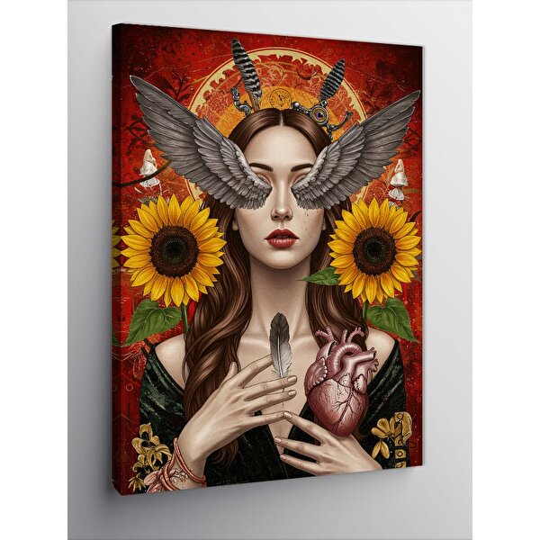 Tablomega Kanvas Tablo Ayçiçekli Kadın Ve Kalp 100x140 cm