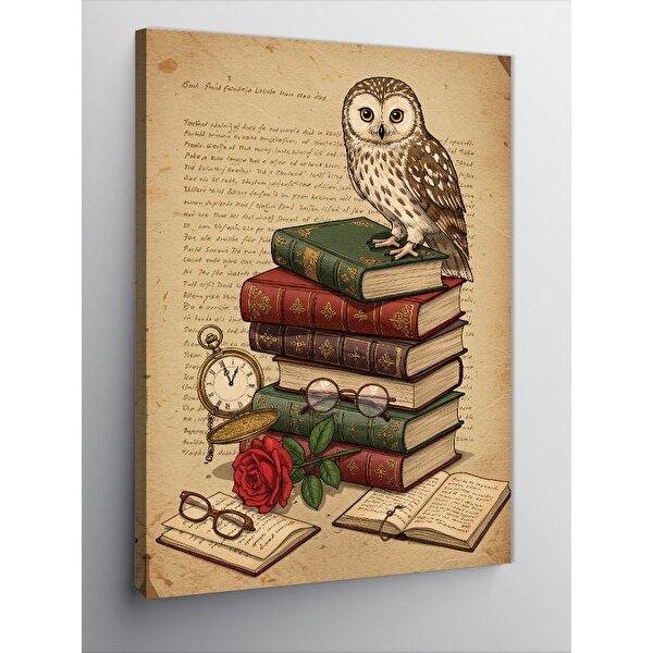 Tablomega Kanvas Tablo Baykuş, Kitap Ve Antik Saat 50x70 cm