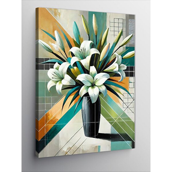 Tablomega Kanvas Tablo Beyaz Çiçekler Ve Modern Vazolar 70x100 cm