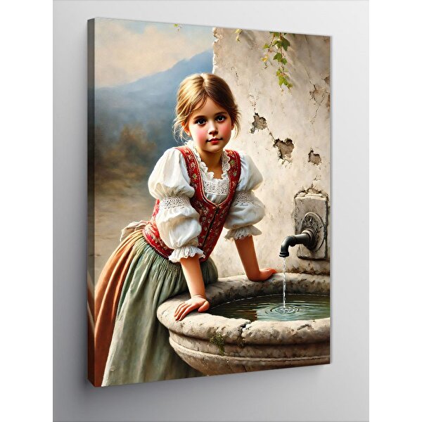 Tablomega Kanvas Tablo Çeşmede Su İçen Genç Kız 100x140 cm