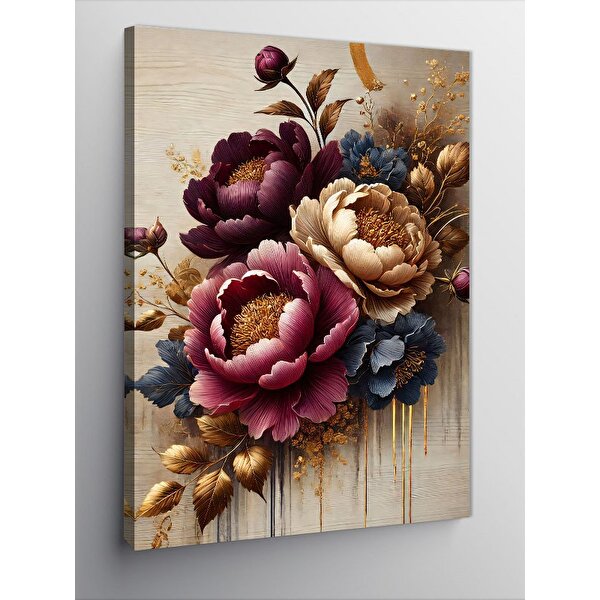Tablomega Kanvas Tablo Çiçeklerle Bezenmiş Altın Kompozisyon 100x140 cm