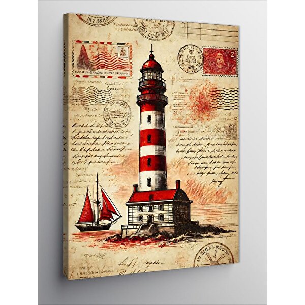 Tablomega Kanvas Tablo Deniz Feneri Ve Kırmızı Yelkenli 70x100 cm
