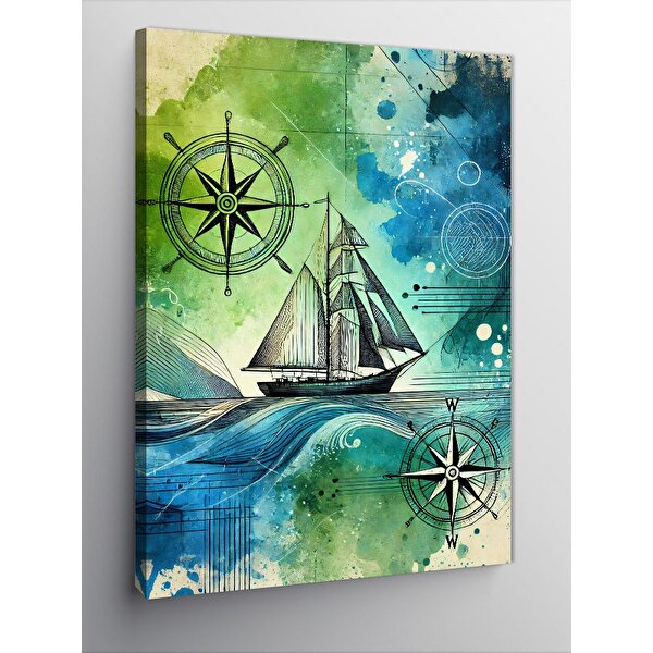 Tablomega Kanvas Tablo Deniz Haritası Ve Yelkenli 70x100 cm