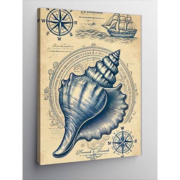 Tablomega Kanvas Tablo Deniz Kabuğu Ve Antik Harita 100x140 cm