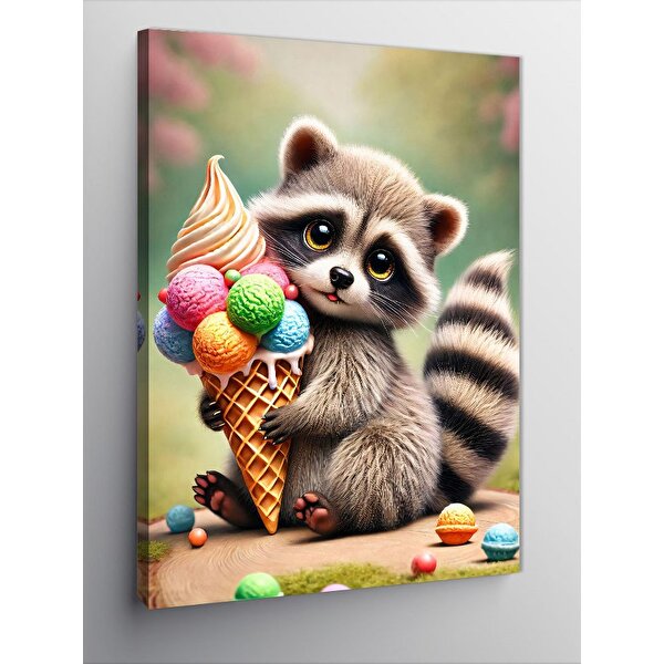 Tablomega Kanvas Tablo Dondurma Tutan Sevimli Rakun 50x70 cm