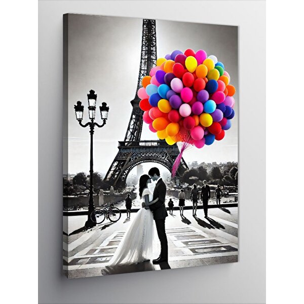 Tablomega Kanvas Tablo Eiffel Kulesi Ve Balonlu Düğün Çifti 100x140 cm