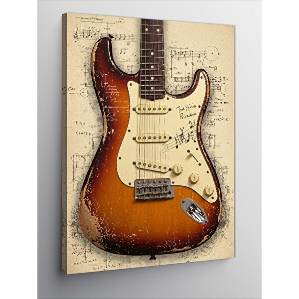Tablomega Kanvas Tablo Elektrik Gitar Ve Nota Deseni 70x100 cm