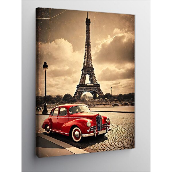 Tablomega Kanvas Tablo Eyfel Kulesi Ve Vintage Araba 70x100 cm