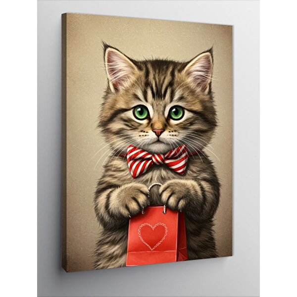 Tablomega Kanvas Tablo Fiyonklu Kedi Ve Şirin Hediye 100x140 cm