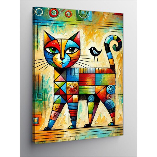 Tablomega Kanvas Tablo Geometrik Renkli Kedi 100x140 cm