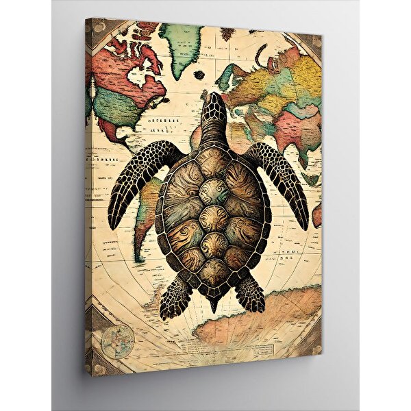 Tablomega Kanvas Tablo Harita Üzerindeki Deniz Kaplumbağası 100x140 cm