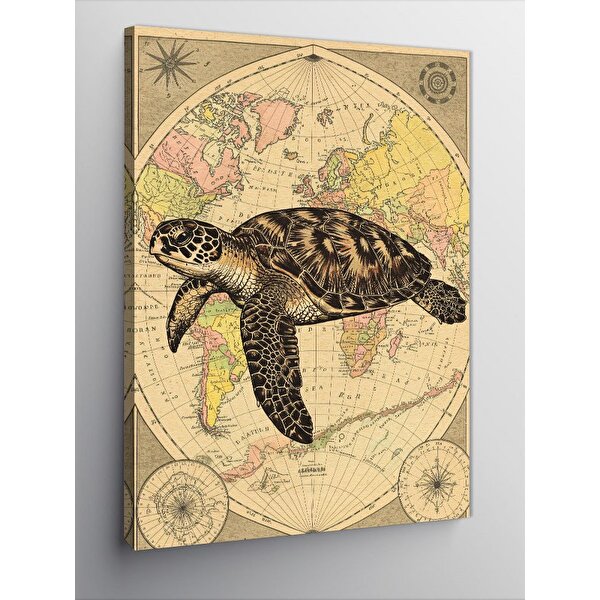 Tablomega Kanvas Tablo Harita Ve Deniz Kaplumbağası 50x70 cm