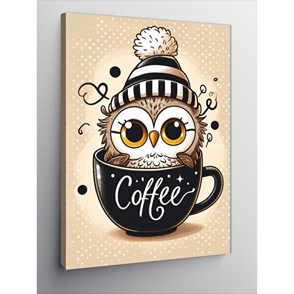 Tablomega Kanvas Tablo Kahve Fincanında Baykuş 50x70 cm