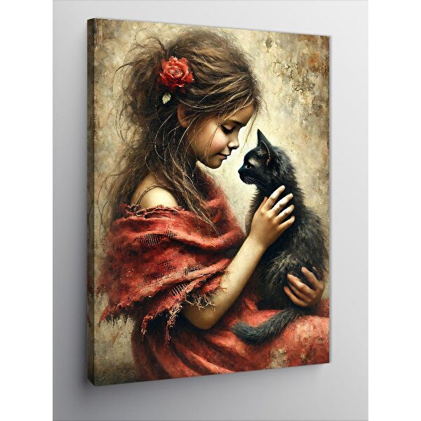 Tablomega Kanvas Tablo Kara Kedi Ve Kız Çocuğu 70x100 cm