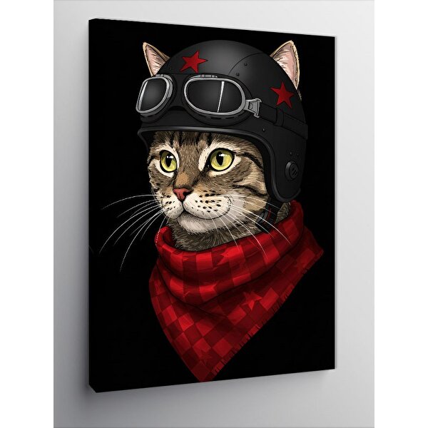 Tablomega Kanvas Tablo Kasklı Kedili Çizim 70x100 cm