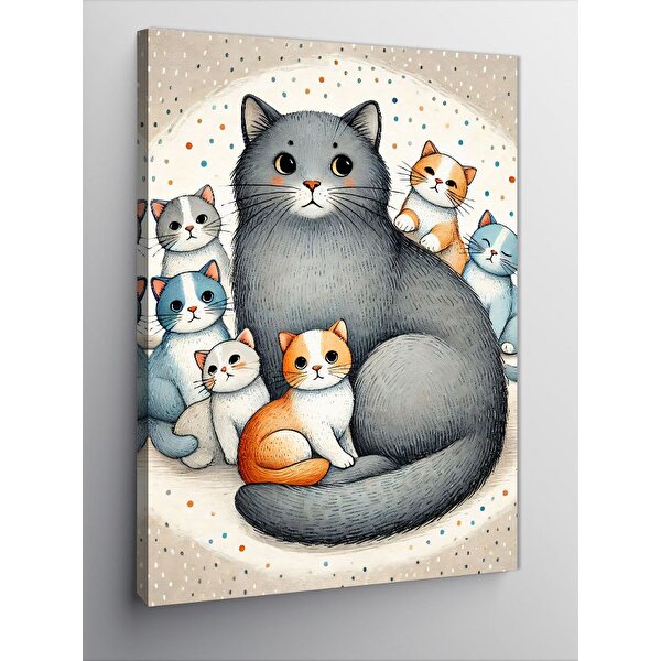 Tablomega Kanvas Tablo Kediler Ailesi Çizimi 50x70 cm