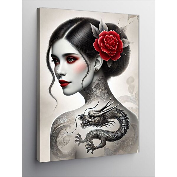 Tablomega Kanvas Tablo Kırmızı Çiçekli Portre 100x140 cm