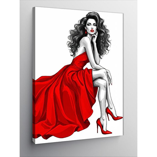 Tablomega Kanvas Tablo Kırmızı Elbiseli Kadın 50x70 cm