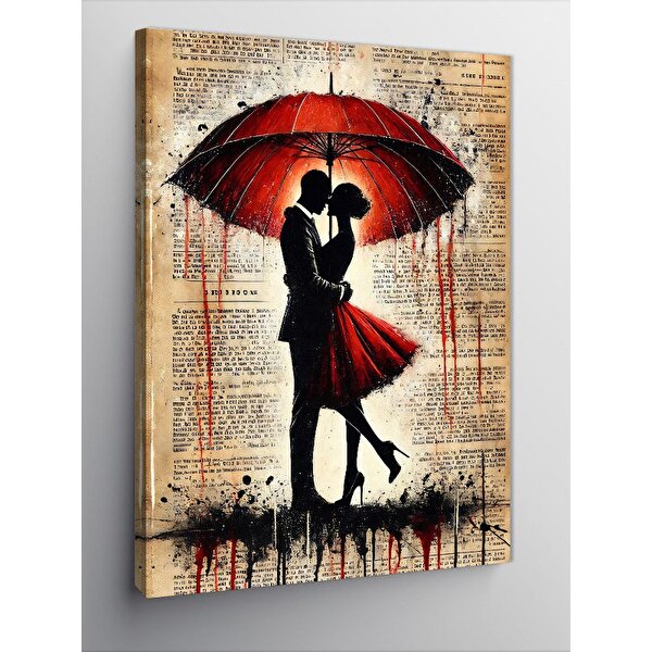 Tablomega Kanvas Tablo Kırmızı Şemsiyeli Dans Eden Çift 100x140 cm