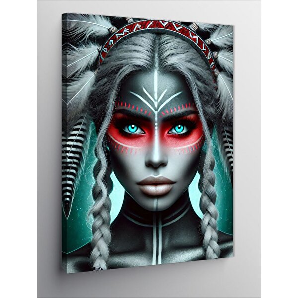 Tablomega Kanvas Tablo Kızılderili Kadın Ve Tüy Deseni 50x70 cm