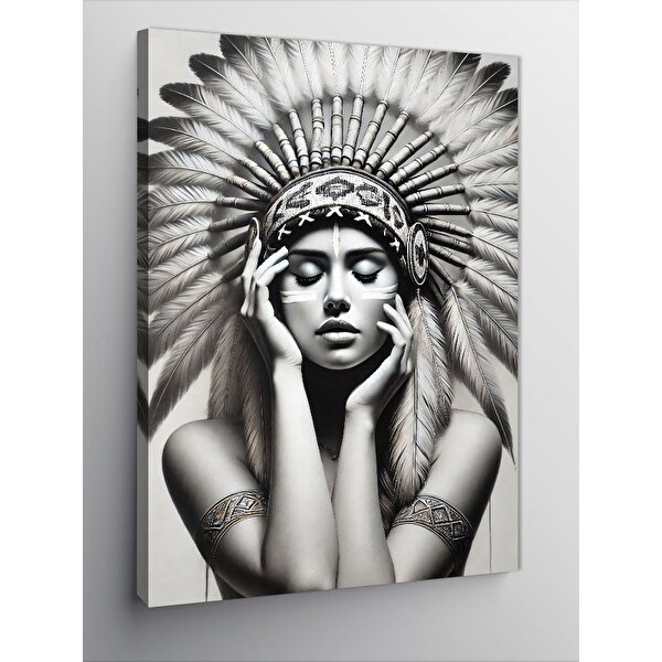 Tablomega Kanvas Tablo Kızılderili Kadın Ve Tüyler 50x70 cm