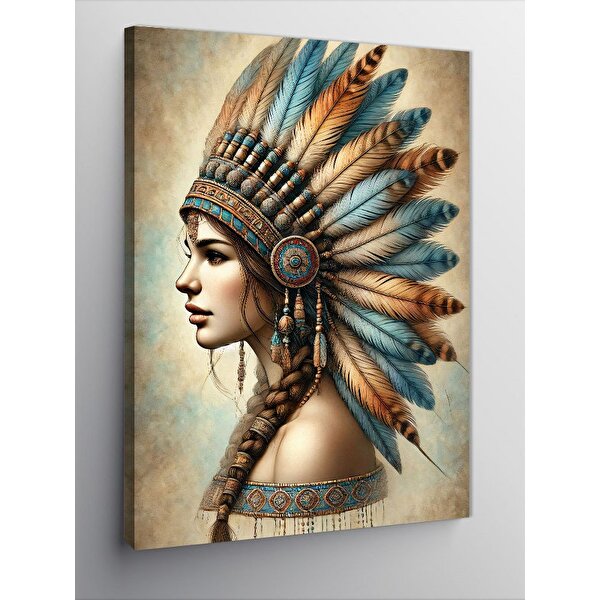 Tablomega Kanvas Tablo Kızılderili Kadın Ve Tüyler 50x70 cm
