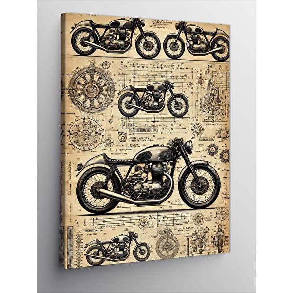 Tablomega Kanvas Tablo Klasik Motosiklet Çizimleri 50x70 cm