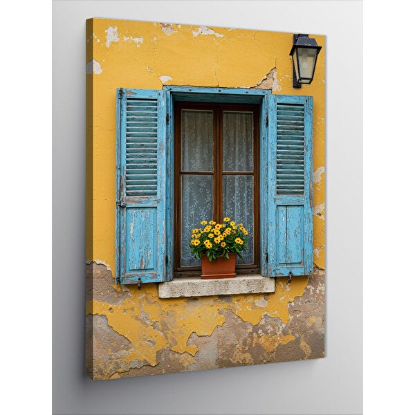 Tablomega Kanvas Tablo Mavi Panjurlu Sarı Ev 100x140 cm