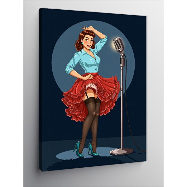 Tablomega Kanvas Tablo Mikrofonlu Retro Şarkıcı Kadın 100x140 cm