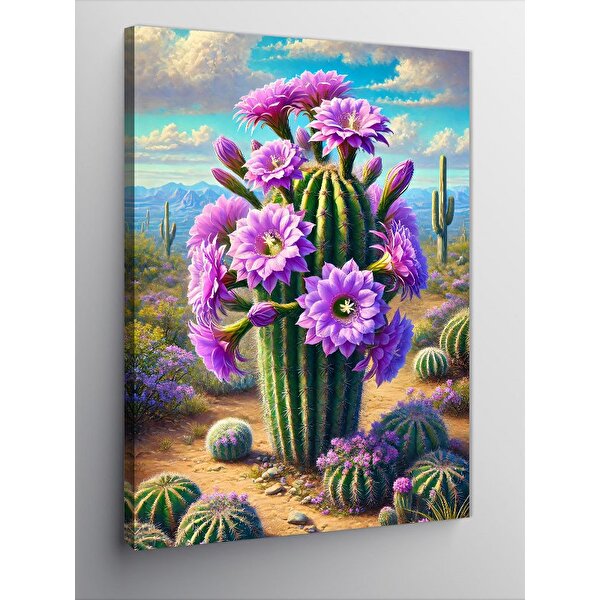 Tablomega Kanvas Tablo Mor Çiçekli Kaktüs 50x70 cm
