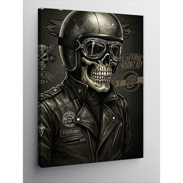 Tablomega Kanvas Tablo Motorcu Kafatası İllüstrasyonu 50x70 cm