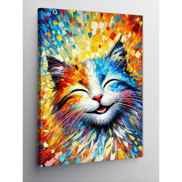 Tablomega Kanvas Tablo Mutlu Renkli Kedi 70x100 cm