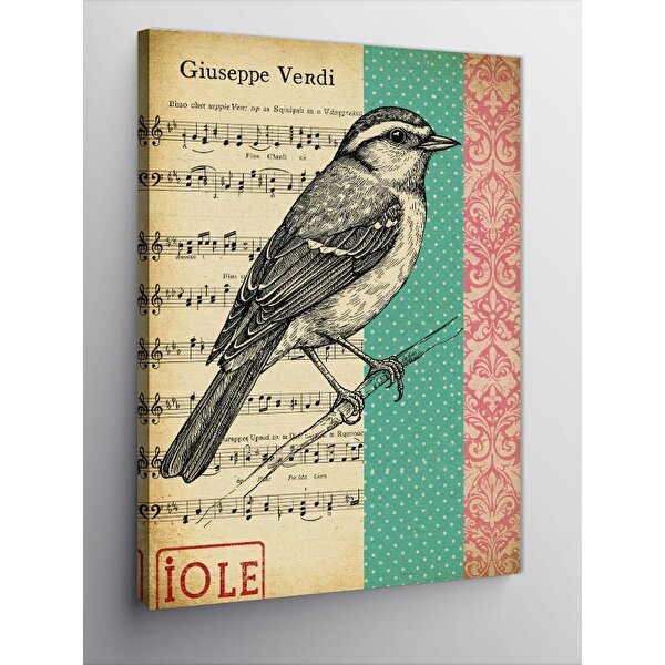 Tablomega Kanvas Tablo Müzik Notaları Ve Kuş Motifi 100x140 cm