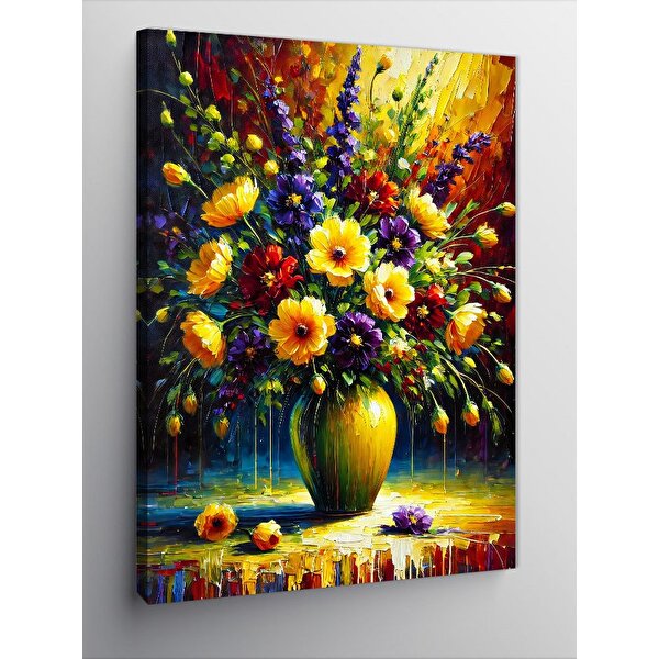 Tablomega Kanvas Tablo Renkli Çiçek Vazosu 70x100 cm