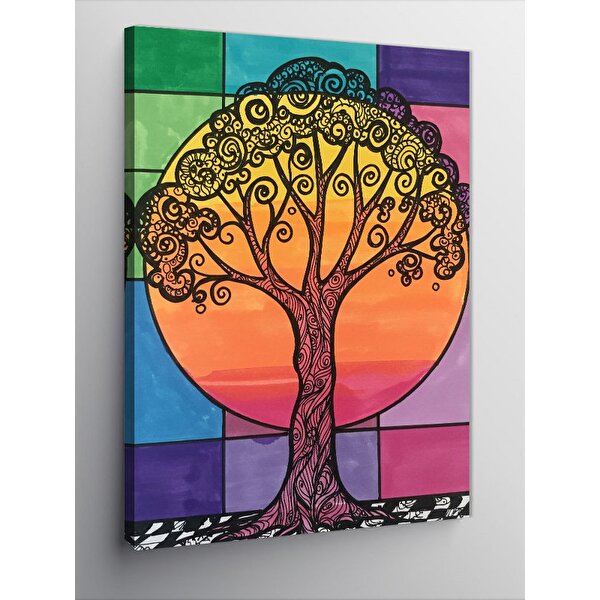 Tablomega Kanvas Tablo Renkli Soyut Ağaç Ve Güneş 100x140 cm
