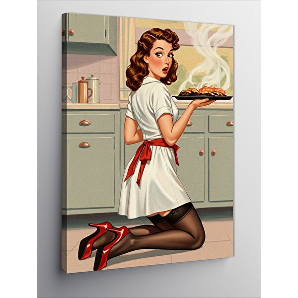 Tablomega Kanvas Tablo Retro Kadın Pasta Sunumu 50x70 cm