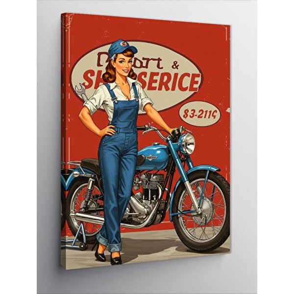 Tablomega Kanvas Tablo Retro Tamirci Kadın Ve Motosiklet 70x100 cm