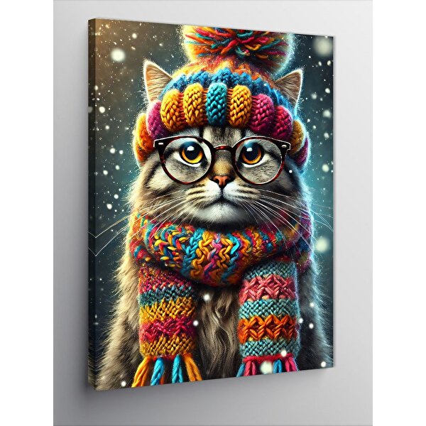 Tablomega Kanvas Tablo Şapka Ve Atkılı Sevimli Kedi 100x140 cm