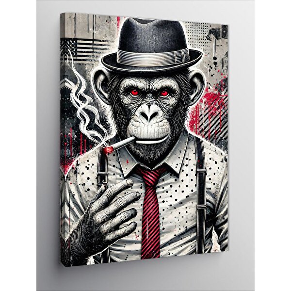 Tablomega Kanvas Tablo Şapkalı Sigara İçen Maymun 100x140 cm