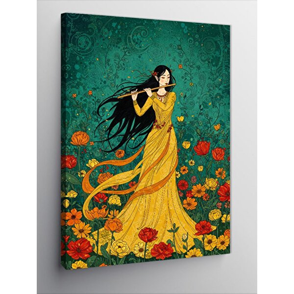 Tablomega Kanvas Tablo Sarı Elbise Ve Çiçekler 100x140 cm